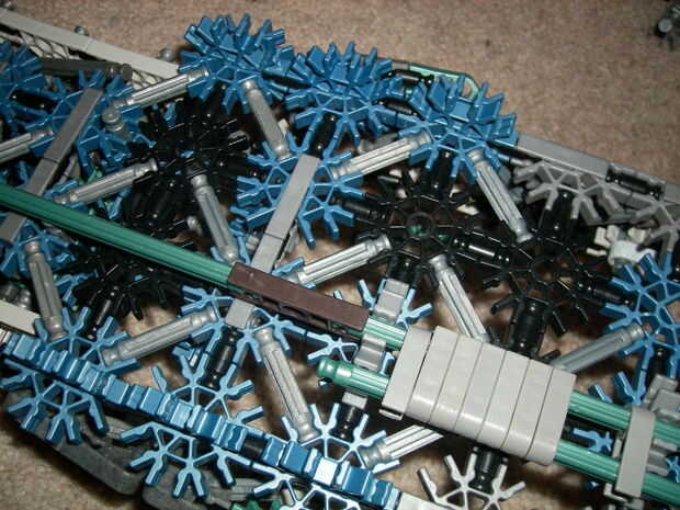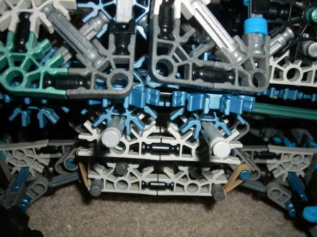 hi this is my old knex high mod jeep. su prety fácil de construir.Paso 1: partespiezas3 conectores y10 barras verdes15 barras blanco9 barras azul3 barras amarillas1 barra roja2 conectores gris6 conecters naranja17 conecters rojo10 conecters amarillo2