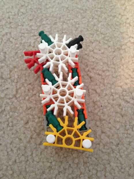 hi this is my old knex high mod jeep. su prety fácil de construir.Paso 1: partespiezas3 conectores y10 barras verdes15 barras blanco9 barras azul3 barras amarillas1 barra roja2 conectores gris6 conecters naranja17 conecters rojo10 conecters amarillo2