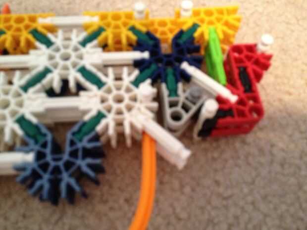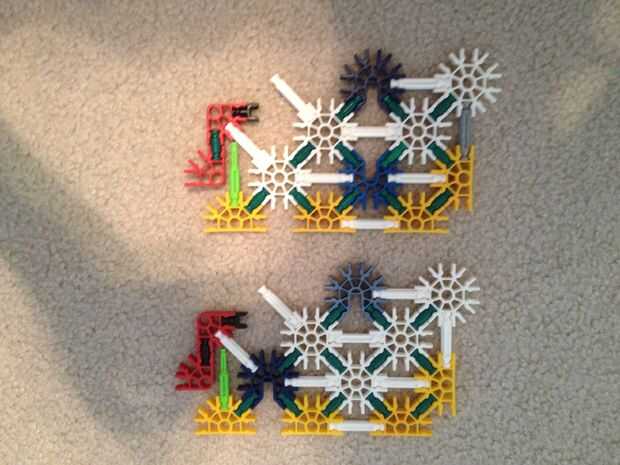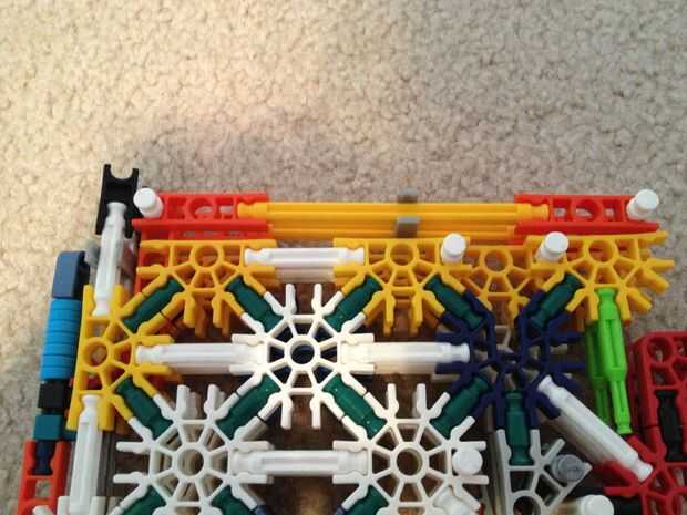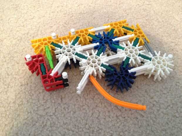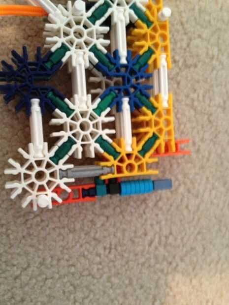hi this is my old knex high mod jeep. su prety fácil de construir.Paso 1: partespiezas3 conectores y10 barras verdes15 barras blanco9 barras azul3 barras amarillas1 barra roja2 conectores gris6 conecters naranja17 conecters rojo10 conecters amarillo2