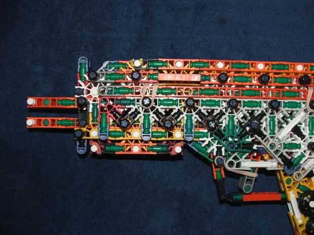 Aquí está mi MTAR Knex del campo de batalla y el bacalao. Tiene algunas características que añadir a su realismo. A pesar de que no existe el MTAR en el juego, no pude resistir construyendo uno. Mi MTAR Knex es un verdaderamente trabajo bull pup, con un mecanismo de acción de cerrojo. La pistola tiene un mecanismo de gatillo de tres etapas que funciona bien y es confiable. La pistola es muy cómoda para la espera y el hombro, siendo un diseño de cachorro de bull, compacta la pistola un poco. Tiene un mecanismo de liberación revista de trabajo, que se oculta debajo de la culata. Más especificaciones: