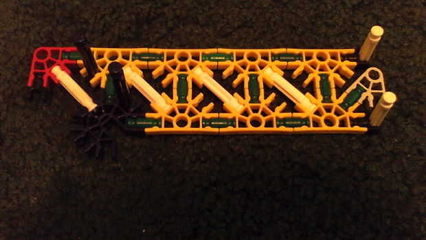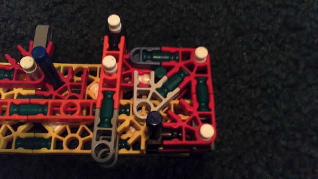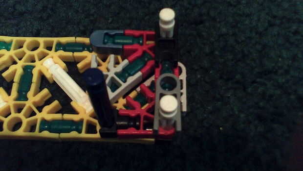 hi this is my old knex high mod jeep. su prety fácil de construir.Paso 1: partespiezas3 conectores y10 barras verdes15 barras blanco9 barras azul3 barras amarillas1 barra roja2 conectores gris6 conecters naranja17 conecters rojo10 conecters amarillo2