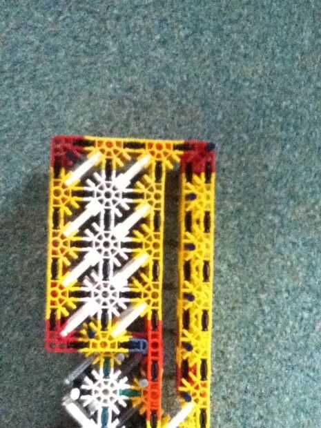 hi this is my old knex high mod jeep. su prety fácil de construir.Paso 1: partespiezas3 conectores y10 barras verdes15 barras blanco9 barras azul3 barras amarillas1 barra roja2 conectores gris6 conecters naranja17 conecters rojo10 conecters amarillo2