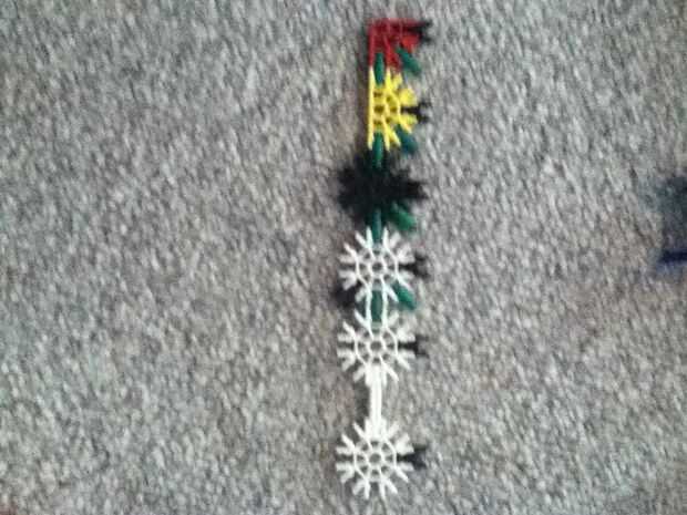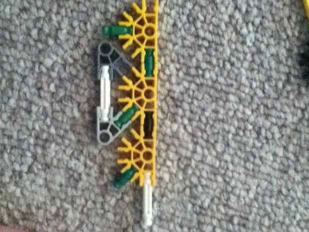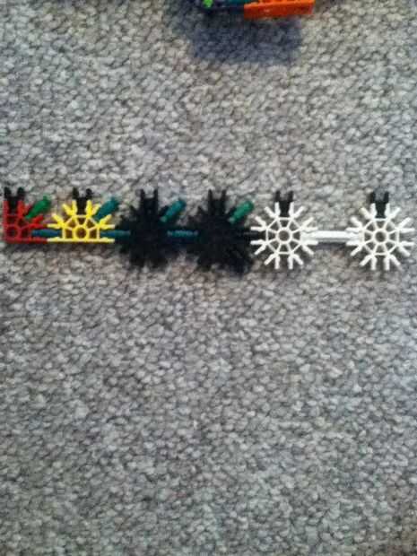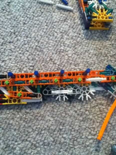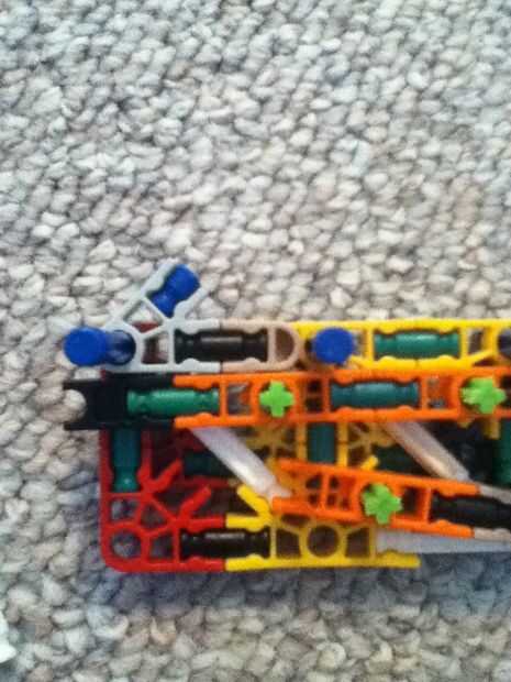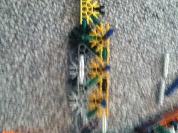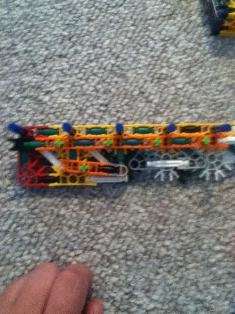 hi this is my old knex high mod jeep. su prety fácil de construir.Paso 1: partespiezas3 conectores y10 barras verdes15 barras blanco9 barras azul3 barras amarillas1 barra roja2 conectores gris6 conecters naranja17 conecters rojo10 conecters amarillo2