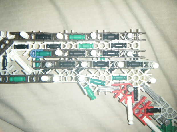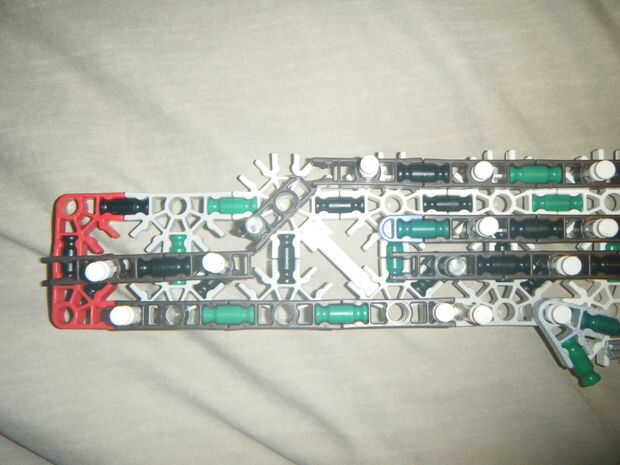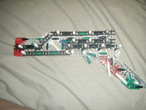 Un cañón que sólo utiliza barras de KVG con mayor precisión para la pistola KillerK Knex.Paso 1: Reúna los suministros.Paso 2: Comenzar a construir. Tomar dos piezas largas gris y comenzar a añadir piezas del triángulo rojo.Paso 3: Construcción de la