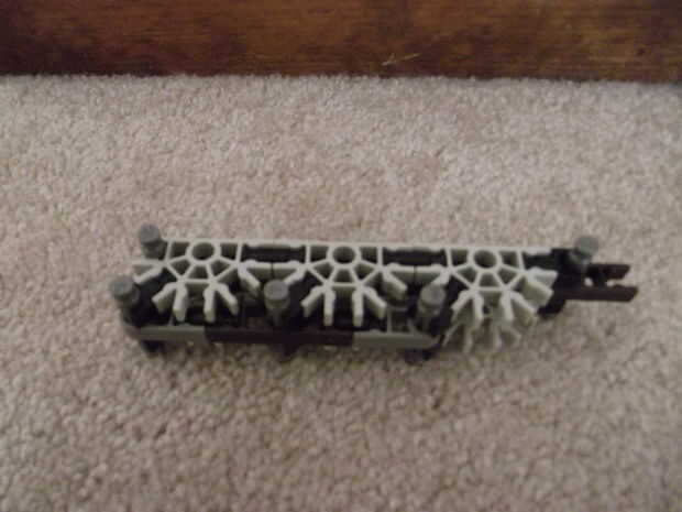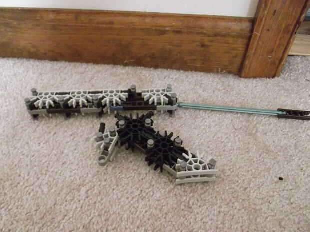 Un cañón que sólo utiliza barras de KVG con mayor precisión para la pistola KillerK Knex.Paso 1: Reúna los suministros.Paso 2: Comenzar a construir. Tomar dos piezas largas gris y comenzar a añadir piezas del triángulo rojo.Paso 3: Construcción de la