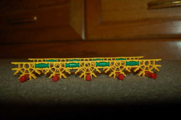 hi this is my old knex high mod jeep. su prety fácil de construir.Paso 1: partespiezas3 conectores y10 barras verdes15 barras blanco9 barras azul3 barras amarillas1 barra roja2 conectores gris6 conecters naranja17 conecters rojo10 conecters amarillo2