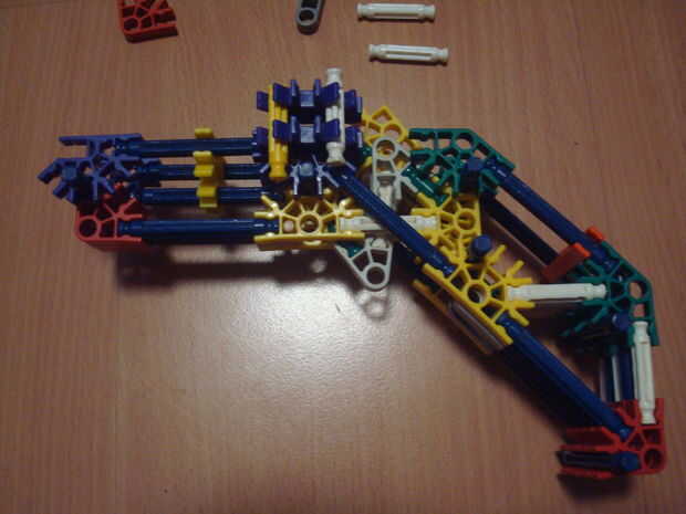 Hola a todos este es mi último proyecto - mi nuevo redil pistola Knex RBG. Usa el mech de esta pistola por itrio pero el resto es mi propio diseño. Esta arma puede sostener 8 gomas y pliega hasta un tamaño compacto agradable. Esta pistola es pequeña