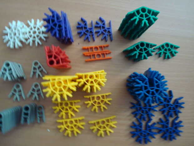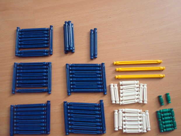 una versión de KVG de un rifle de plasma de Halo.Paso 1: piezasLista de piezas:Barras deVerde - 22Blanco - 10Azul - 12Amarillo - 13Rojo - 13Gris/negro - 12ConectoresGris - 8Gris claro - 38Naranja - 14Rojo - 4Verde - 8Amarillo - 38Blancos copos de nie