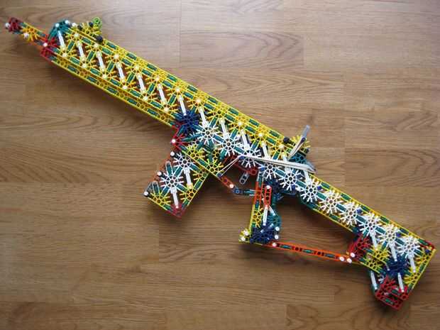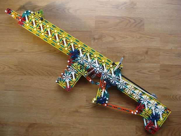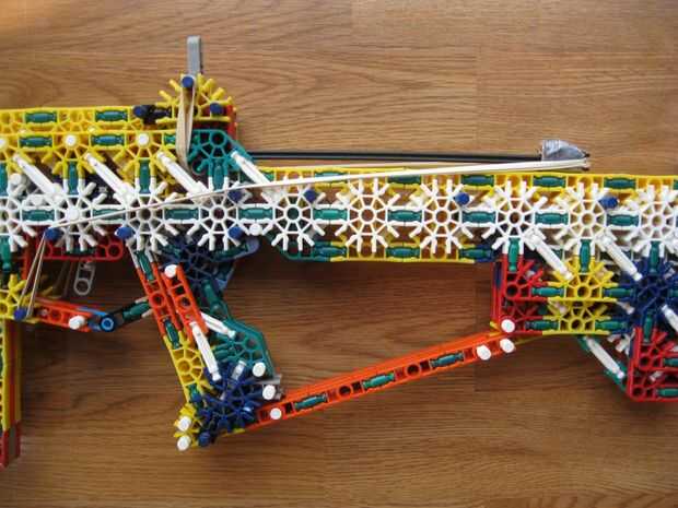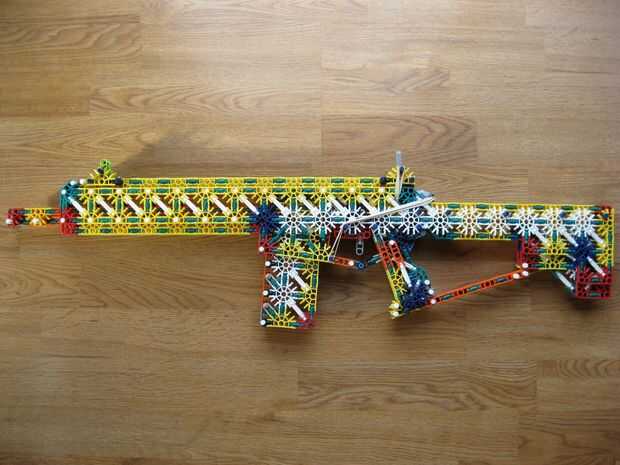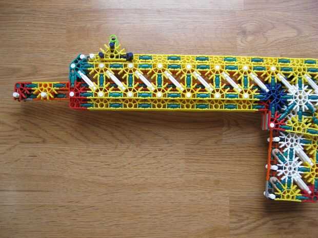 ¡ Oh hombre, dos en un día. Este es probablemente uno de los rifles mejor aspecto nunca han hecho y funciona muy bien también. Dispara unos 45 pies tal vez más no probarla muy bien. El rifle tiene un tirón agradable y largo perno para máxima potencia. La empuñadura en esta cosa se siente increíble (nunca he tenido un problema con partes puntiagudas cavando en mis manos esta arma). Se puede montar casi cualquier vista o barril accesorio en él. Dispara contra gris con barras verdes (bastante estándar). No sé si voy a publicar o no. También no espero mucho de mí en el futuro.