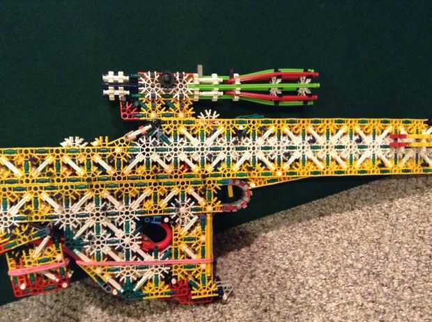 Estoy muy contento con la apariencia pero no con el mecanismo. Tiene un falso mag y es esencialmente un tirachinas glorificado. Estoy publicando esto como un alfa porque planeo modificarlo para tener una revista real y un mecanismo de bullpup dentro de la misma cáscara estéticamente agradable. Me lo envió ahora en caso de que accidentalmente destruí lo más allá de la reparación durante la modificación. Si puedo conseguir V2 para trabajar y ser innovador, lo publicaremos junto con las instrucciones; y si no...