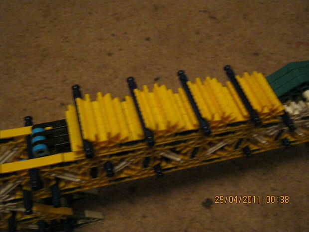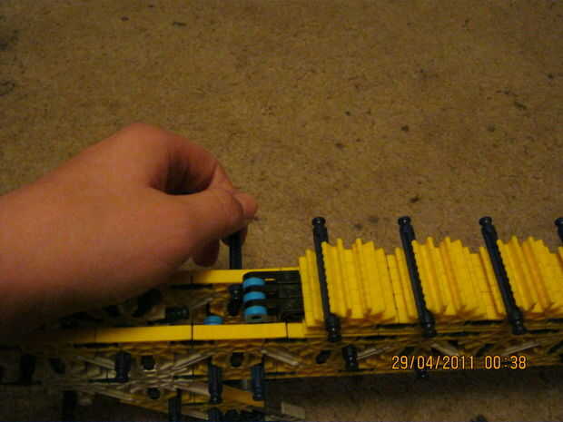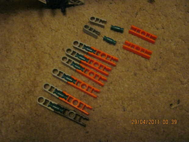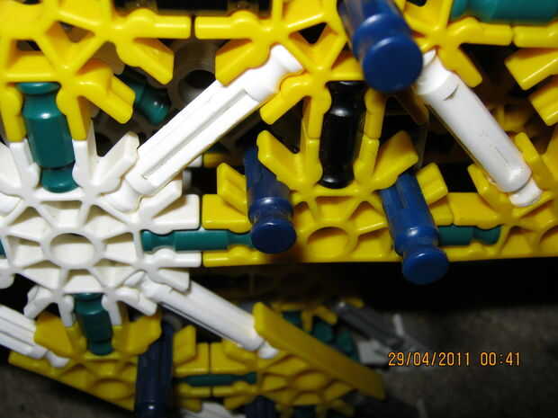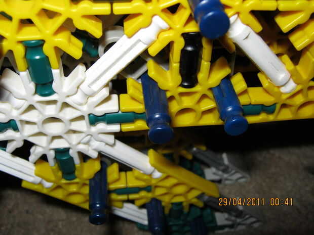 hi this is my old knex high mod jeep. su prety fácil de construir.Paso 1: partespiezas3 conectores y10 barras verdes15 barras blanco9 barras azul3 barras amarillas1 barra roja2 conectores gris6 conecters naranja17 conecters rojo10 conecters amarillo2