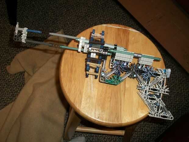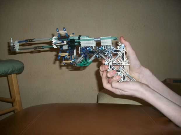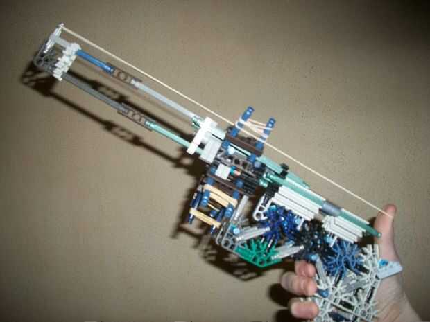My new knex gunSling Shot Rifle One ShotCuenta con:Un sistema de disparo: |Inicio carga del cañón:)rango de 45 pies con 2 bandas!:)Cómoda manija:)No por lo que bien parece :(Lenta velocidad de disparo :(Crédito para:Asesino-Safecraker para el gatill