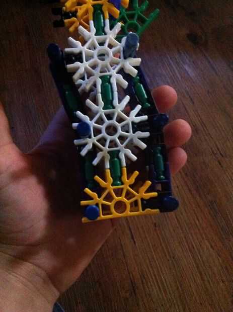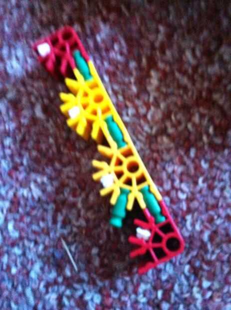 hi this is my old knex high mod jeep. su prety fácil de construir.Paso 1: partespiezas3 conectores y10 barras verdes15 barras blanco9 barras azul3 barras amarillas1 barra roja2 conectores gris6 conecters naranja17 conecters rojo10 conecters amarillo2