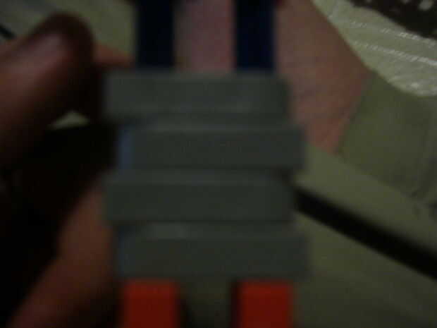 se trata de cómo la barra azul se conecte a los conectores naranja que a la derecha e izquierda de la parte principal de la slingshot.u ned 4 gris conectores entre las barras de azul en cada lado.
