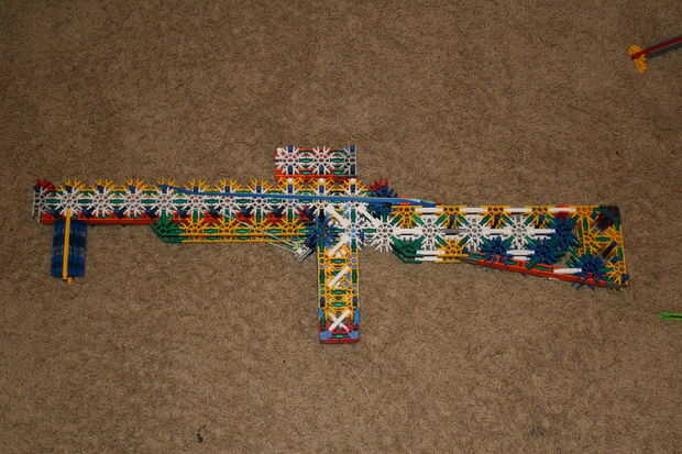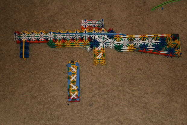 Este es mi KVG sub ametralladora con cargador extraíble, culata extensible (mi agradecimiento al libro rojo del oeste) y visor de punto rojo.Paso 1: barril Paso 2: gatillo Paso 3: manejar Paso 4: revista Por debajo de la cinta es barras verdesPaso 5: