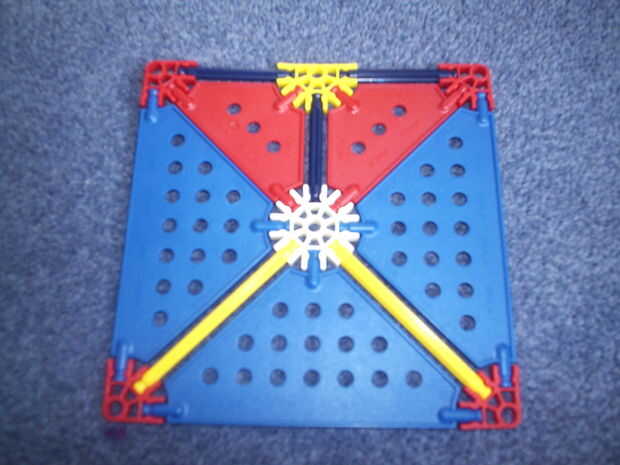 hi this is my old knex high mod jeep. su prety fácil de construir.Paso 1: partespiezas3 conectores y10 barras verdes15 barras blanco9 barras azul3 barras amarillas1 barra roja2 conectores gris6 conecters naranja17 conecters rojo10 conecters amarillo2