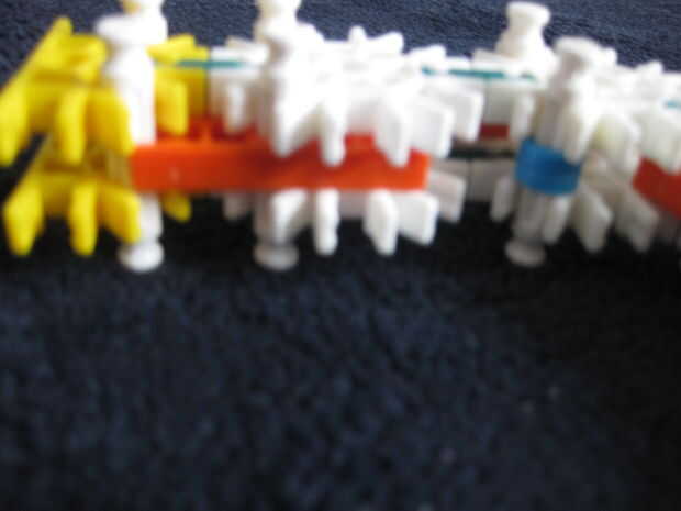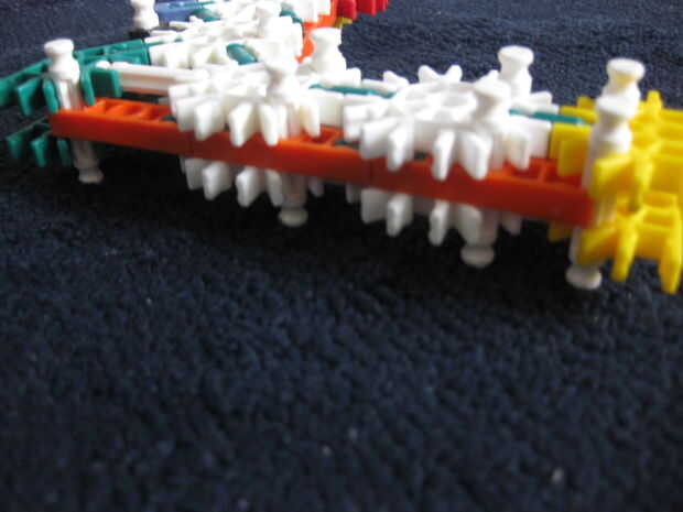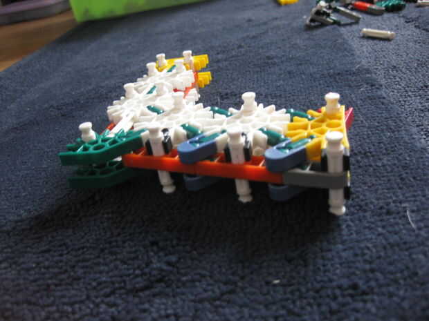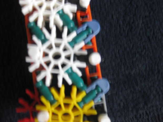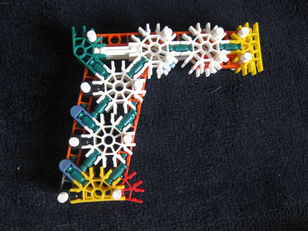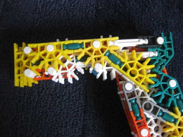 K'nex de una banda de caucho pistola con revista cargar sistema.  Revistas pueden ser de muchas longitudes diferentes para propósitos diferentes.  Aunque sean como barriles intercambiables, pedirá los compartimientos.Pros:-Semi-automatica-Compartimie