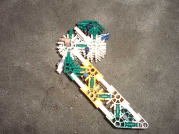 esto es un arco de K'nex totalmente funcional que hice recientemente. Como se puede ver en las fotos, se pliega pequeño bastante para caber en una pistolera de la pierna o envoltura, que no muestro aquí. Es bastante fácil de hacer por mirarlo, así qu