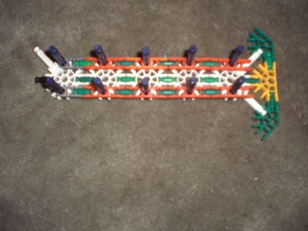 mi propia creación de un arco de KVGToma alrededor de 40-55 piezasPros:SmootheSimpleVa cerca de 20 pies o más dependiendo de RBContras:No disparar a lo lejosPaso 1: Centro Hacer uno de estos, su donde pones tu munición en.Esta es simple5 morados2 esp