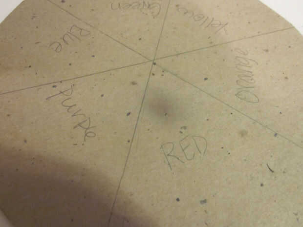 Etiqueta de las secciones de rojo, naranja, amarillo, verde, azul y púrpura.