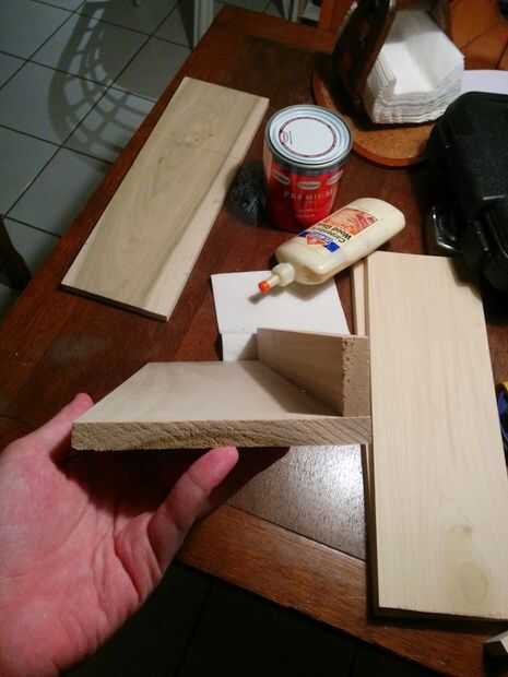 Utilice el pegamento para madera para sujetar la madera y usar una abrazadera (opcional) para que el pegamento fijar. Utilice una pistola de clavos para sujetar firmemente la madera.