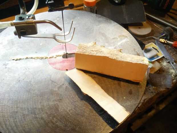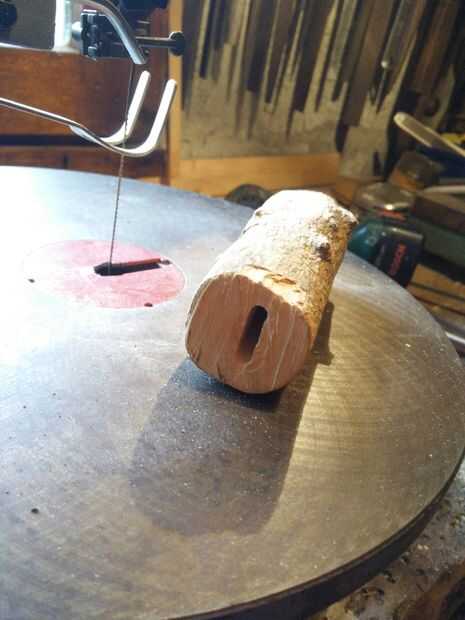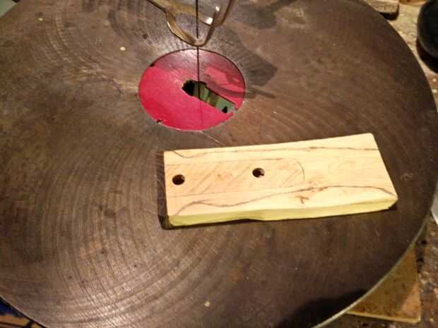 Lijado un lado de la pieza de madera de boj por lo que estarían en la Sierra de calar y perforar tres agujeros en el centro para hacer una ranura de la forma de la espiga de la hoja.