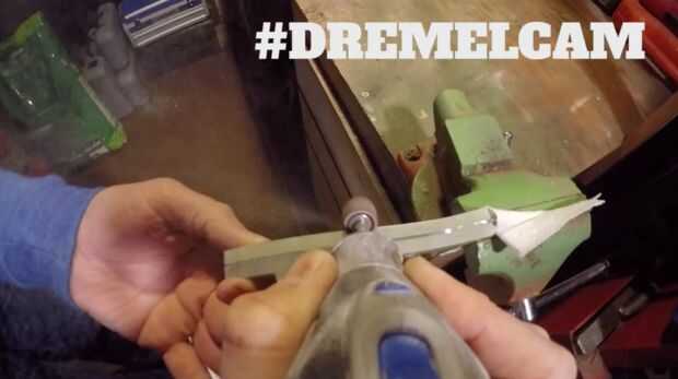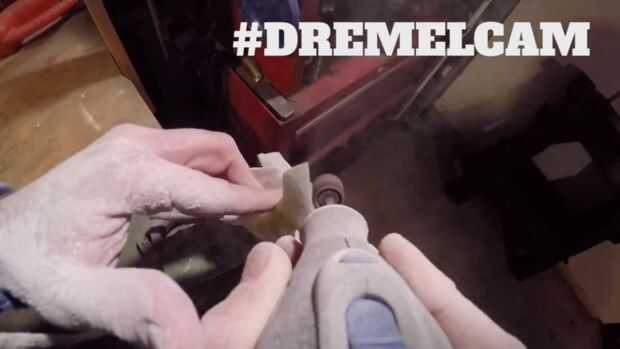 Utilizando un par de herramientas aquí, el objetivo es tomar el contorno rugoso para un agarre cómodo cuchillo. Un tambor de lijar que unido a mi gran 8220 trabajadas para derribar el borde inicial y el radio apretado de la zona frontal, dedo pulgar, usé mi lijadora de banda 1 x 30 para áreas más grandes.