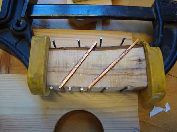 Debido al ángulo de la copperplating, tuve que hacer una rápida caja de clavos para que las piezas no deslice aparte, cuando se agrega presión.