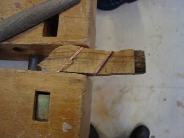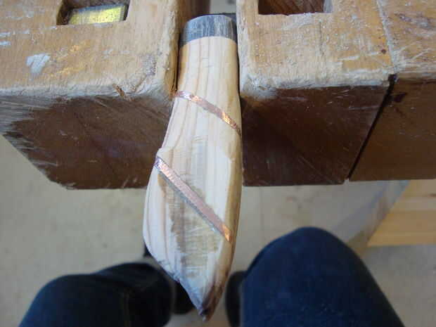 Sacar la hoja de la woodpiece y transferencia de su diseño inicial a través a la woodpiece, y luego echar un buen vistazo y determinar si es como se planeó o es tiempo de hacer algunos ajustes. Personalmente hice hacer el mango más largo y el hornpiece más grueso.