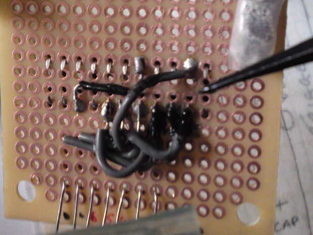 Bien por lo que no pude hacerle popular sufre el desorden absoluto mi perfboard 1 de cableado trabajo parecía así que decidí hacerlo de nuevo en el siguiente paso, pero he dejado esto aquí para mostrar mi perfboard muy 1 º en mi vida!!! (Edad de tan sólo 34 años va a demostrar que un perro viejo puede aprender nuevos trucos, jajaja!)