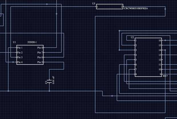 S se puede ver en esta imagen, la conexión final está entre pernos 3 de la 555 y 14 en el 4017. Hay una resistencia de 10K ohm entre ellos. Es muy simple, y no debe tener ningún problema con este paso. Una vez que ha conectado, conectar el lado positivo de una batería de 9 voltios a lo positivo (obviamente) y el negativo al negativo. Ver sus luces persiguen uno al otro y hacia atrás!