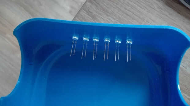 Taladré agujeros de 5mm que quería poner de LED por todas partes. El LED utiliza tiene un diámetro de 5mm así que cabido perfectamente! He utilizado:
