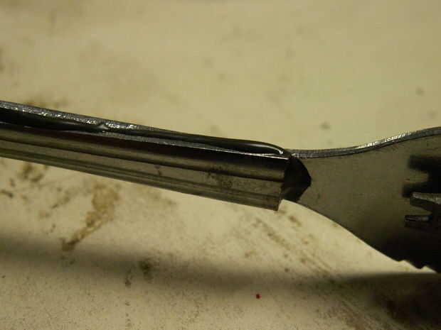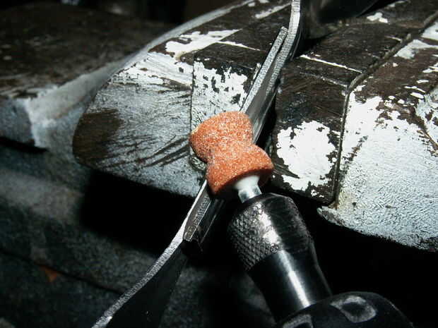 Ahora si tienes algo que se parece a la primera foto.  Hay un montón de aristas allí que encantaría a cortar su mano o boca para ir por delante y les lisa hacia abajo con la broca de carburo de tungsteno, la piedra de moler y la Lima de metal.  Ser paciente con la molienda para que accidentalmente no dañar la superficie.