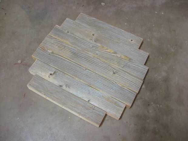Estas piezas fueron pegadas y atornilladas juntos, y entonces la cosa entera fue cortada en forma de círculo con una sierra de calar.
