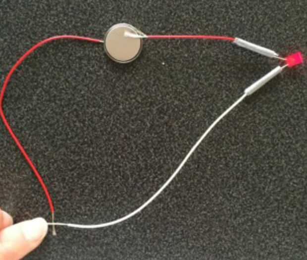 Pierna de lange rode draad op de cinta, pierna de batería se reunió de zijde más hier op, op de bovenkant van de batería pierna je de korte rode draad die zit enorme aan het lampje.