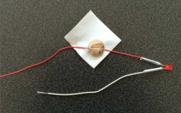 Geef de draadjes een paar voeten se reunieron aluminiumfolie. Vouw de aluminiumfolie om de uiteinden van de draad om tot een bolletje. Houd de voetjes tegen dirección, branden de gaat het lampje.