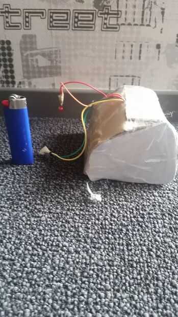 5. el pak de arduino en doe de met de batería aangesloten en el dobladillo en de knuffel.