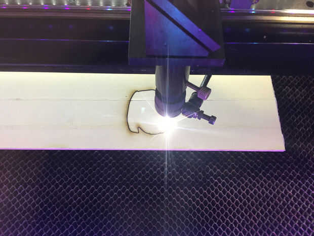 Había pintado un tablero MDF blanco, dejar secar y luego lo enmascare con cinta de enmascarar. Situado en el cortador del laser y comenzó a cortar. (Imagen de 4:1) Utilice las configuraciones y programas que suelen utilizar para su cortador.