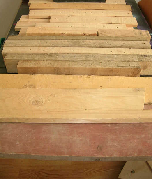 De planken dienen nu als constructie voor een 2de tafelblad. IK básica hier een plaat voor die niet al te zwaar es. OP die plaat bevestig ik een wijnkistje die je als opbergbak kunt gebruiken. IK heb met een schietnietmachine wat textiel als bekleding van de bak en tafelblad geniet. (foto de zie)