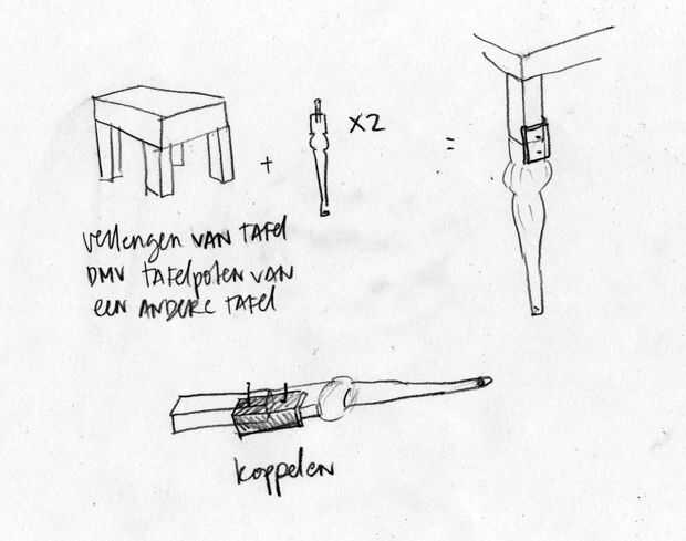 Es nu de tafel verhoogd, ga ik de onderlinge poten satisfizo dirección verbinden. En alle richtingen komen dwarsliggende planken. (zie tekening) Zo wordt alles sterk en stabiel.