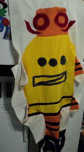 Corté algunos ojos estilizados y branquias que le atribuyo con una puntada zig-zag.