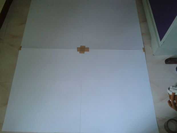 Aquí uso una carta del tamaño del A1 pero tamaño pequeño cuando se compara a la entrada del salón de matrimonio. Así que pegan cuatro carta usando una cinta en la parte posterior.