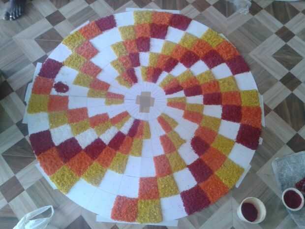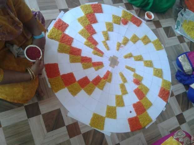 4) primero llenar la sal de cristal de color amarillo como se muestra en la imagen. Como una rueda giratoria.