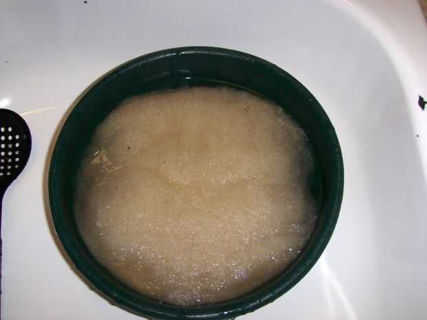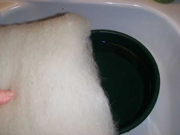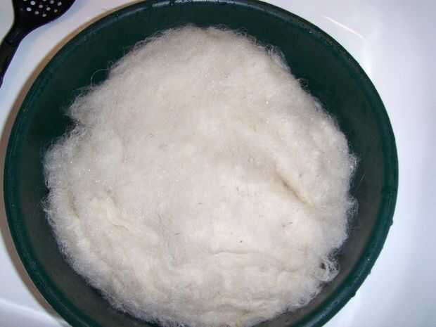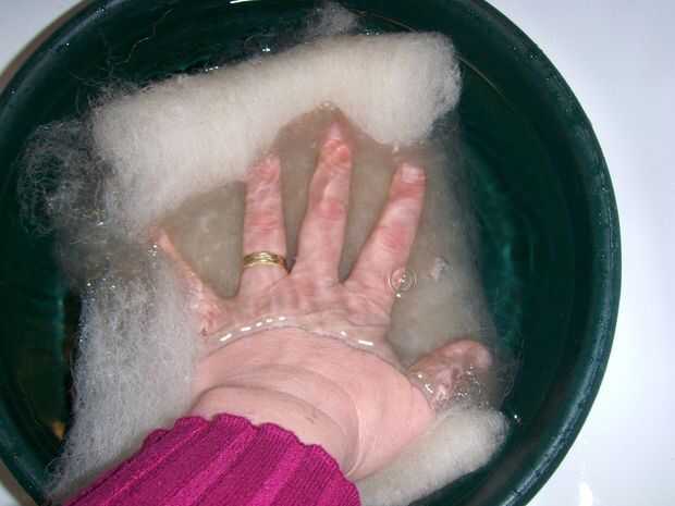Levantar los rollos de lana de todos a la vez fuera del agua y exprimir la mayor parte del agua fuera de él.