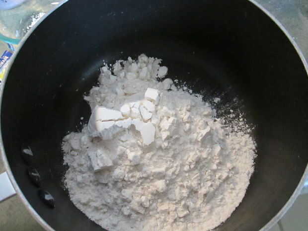 e n la cacerola ponga la harina,