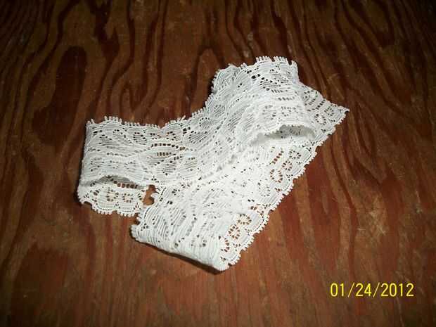Corte que encaje a la longitud deseada que quieras, a menos que quieras del mismo color. Voy a hacer una diadema de bebé con mi encaje así que mina corte a 14 pulgadas.