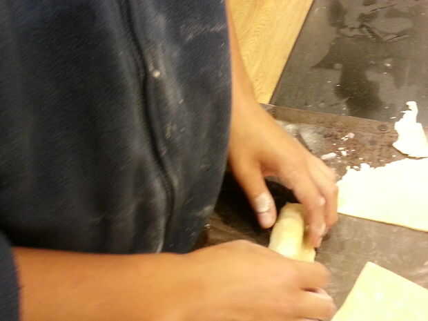 Metiendo de los extremos entonces balanceo es sin duda el aspecto acabado limpio. Me gusta el pellizco en el método de end. Le da un aspecto casero y textura. El pan era sólo una manera de cambiar por el factor de forma. Eran más difíciles de fry. Al cerrar los extremos del rodillo y pizca podría considerar un recipiente de agua que se pueden sumergir los dedos en para ayudar a sellar los extremos. También puede considerar un glaseado de huevo si es tuyo para los rollos de huevo antes de freír. No fuimos a esta manera tan YMMV. Emocionarse de pronto es el momento de freír!!!!!!