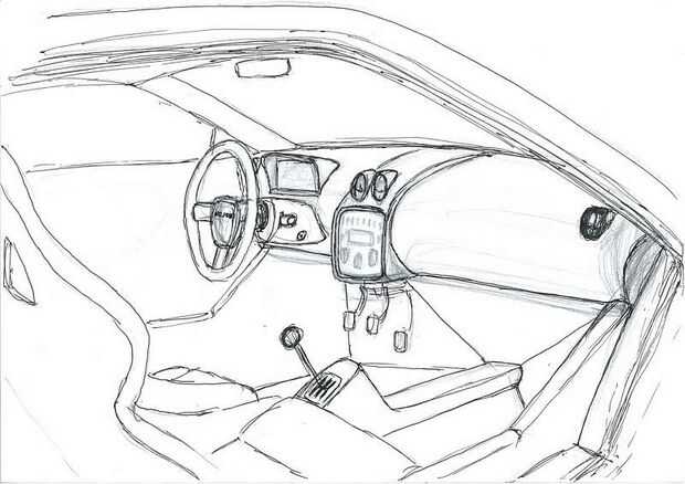 En aquel momento, también estaba preparando el boceto del tablero de instrumentos.