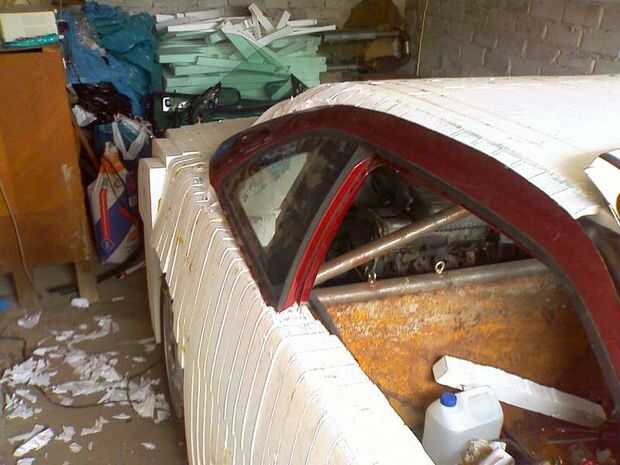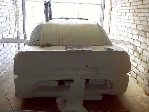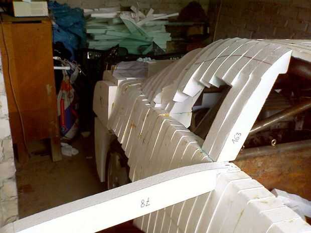 En Varsovia, continué con el pegado de los perfiles de corte de espuma de poliestireno.