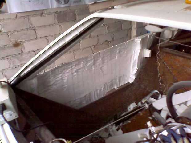 a montaje de los mecanismos de elevalunas de windows, decidí recortar la parte interna de la puerta de Alfa Romeo y junto con atornillado, mecanismo de trabajo empareja en el modelo de carrocería. Juego de vidrios con marcos de ventanas tuvo unos pocos días.